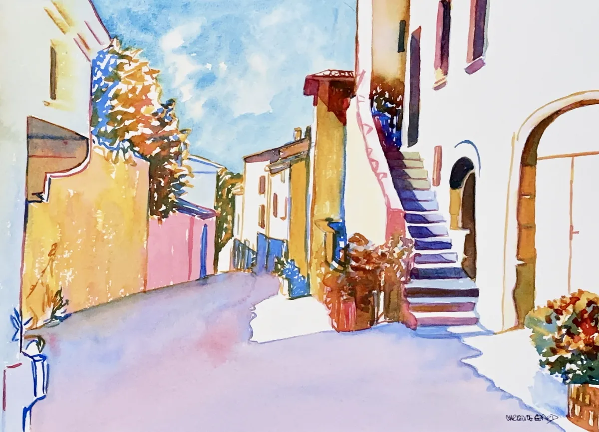 Village View By Christine Beard 2024 Watercolour On Paper 31 cm W x 41 cm H.jpg