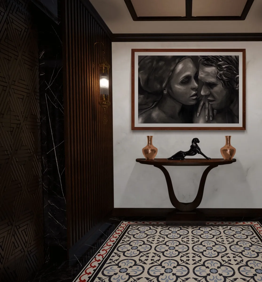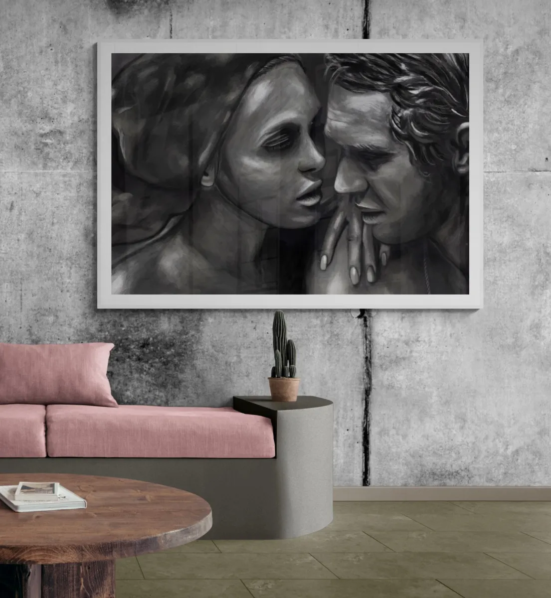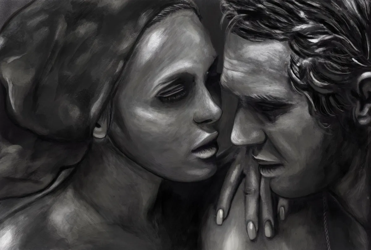 Digital Oil Painting of Filmstill. Custom dimensions. Description: Faye Dunaway and Steve McQueen in "The Thomas Crown Affair" - The Sauna scene.